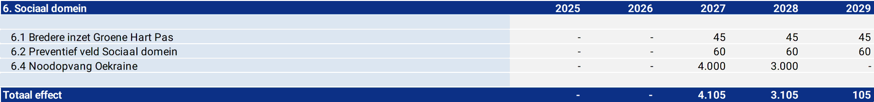 - Maatregelen die een effect op de exploitatiebegroting hebben; een bedrag van € 20,7 miljoen