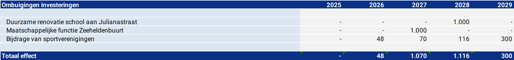 - Maatregelen voor het terugdringen van investeringen; een bedrag van € 3,6 miljoen