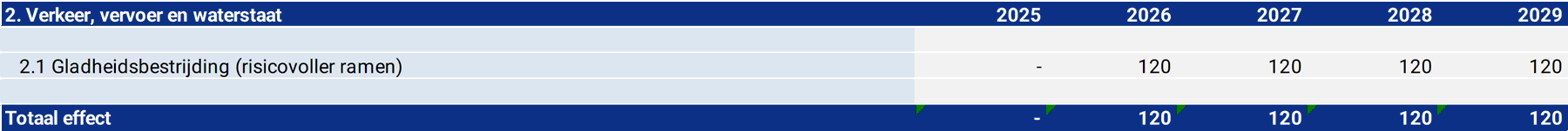 De gladheidbestrijding ramen we tot op heden op basis van een milde winter.