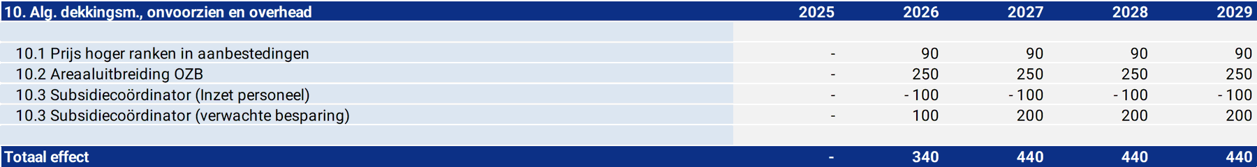 Ombuigingen programma 10 Algemene dekkingsmiddelen, onvoorzien en overhead