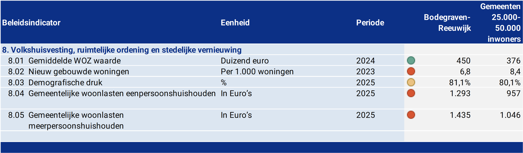 In onderstaande tabel ziet u de indicatoren die verplicht zijn voorgeschreven door de BBV.