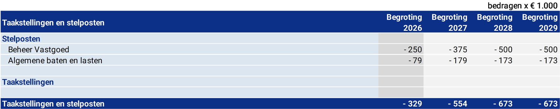De in de begroting opgenomen taakstellingen en stelposten zijn als volgt te specificeren.