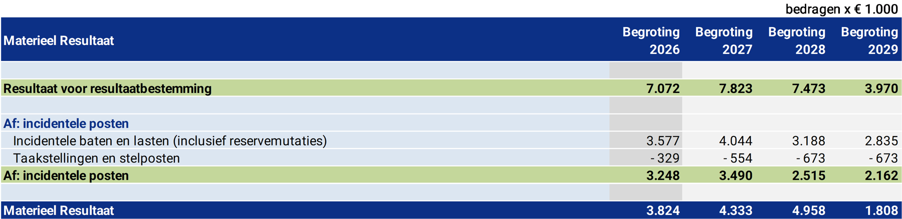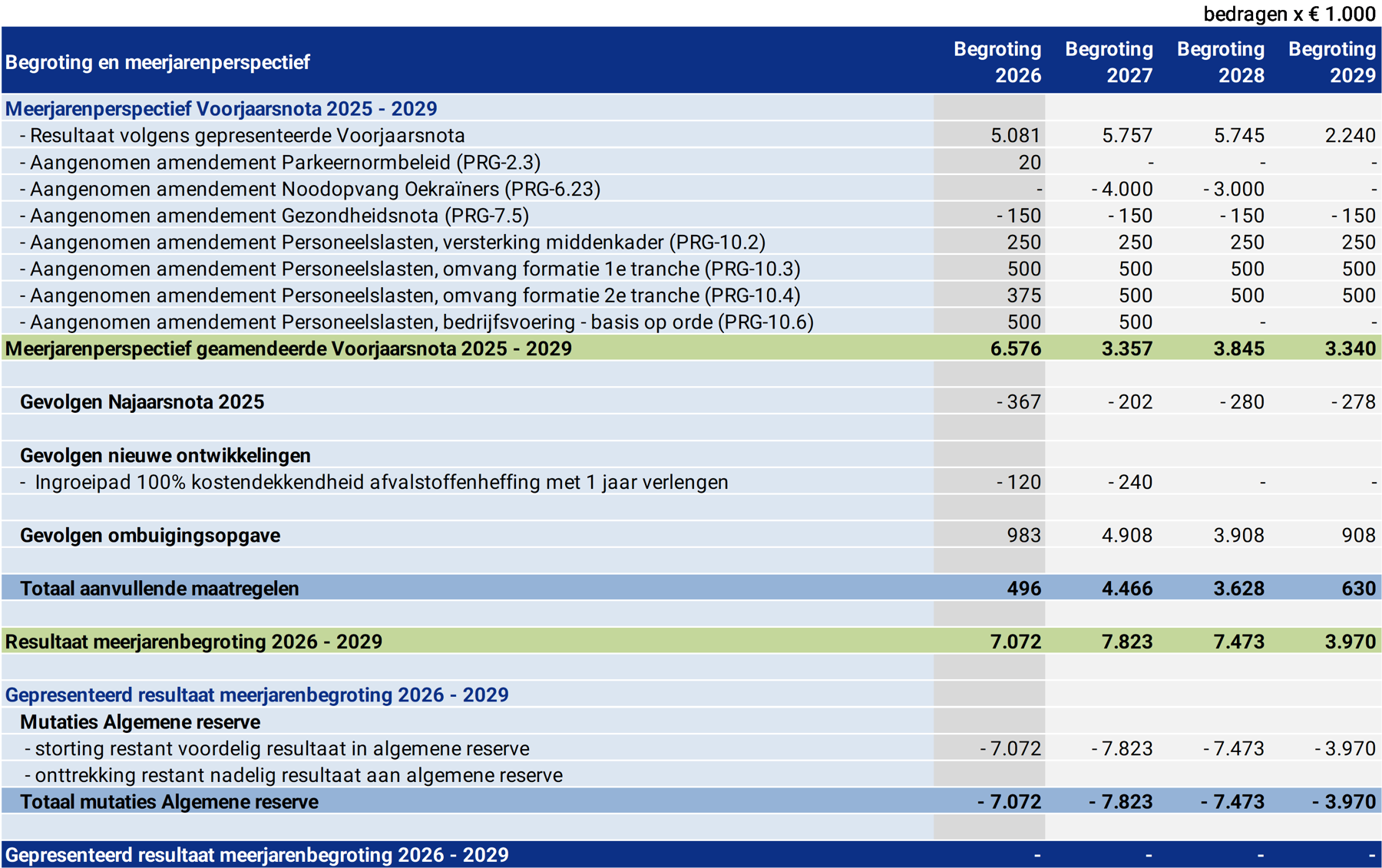 Uiteindelijk leidt dit tot het gepresenteerde 'resultaat meerjarenbegroting 2026-2029'.