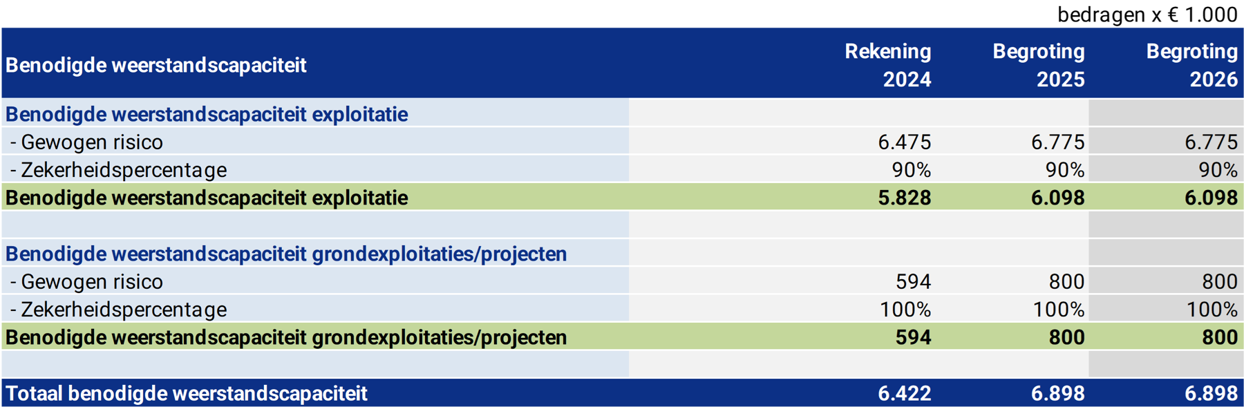 De omvang van de benodigde weerstandscapaciteit wordt bepaald door het totaal van de gewogen risico’s te corrigeren met het zekerheidspercentage. Aan de hand hiervan kan de benodigde weerstandscapaciteit als volgt worden bepaald.