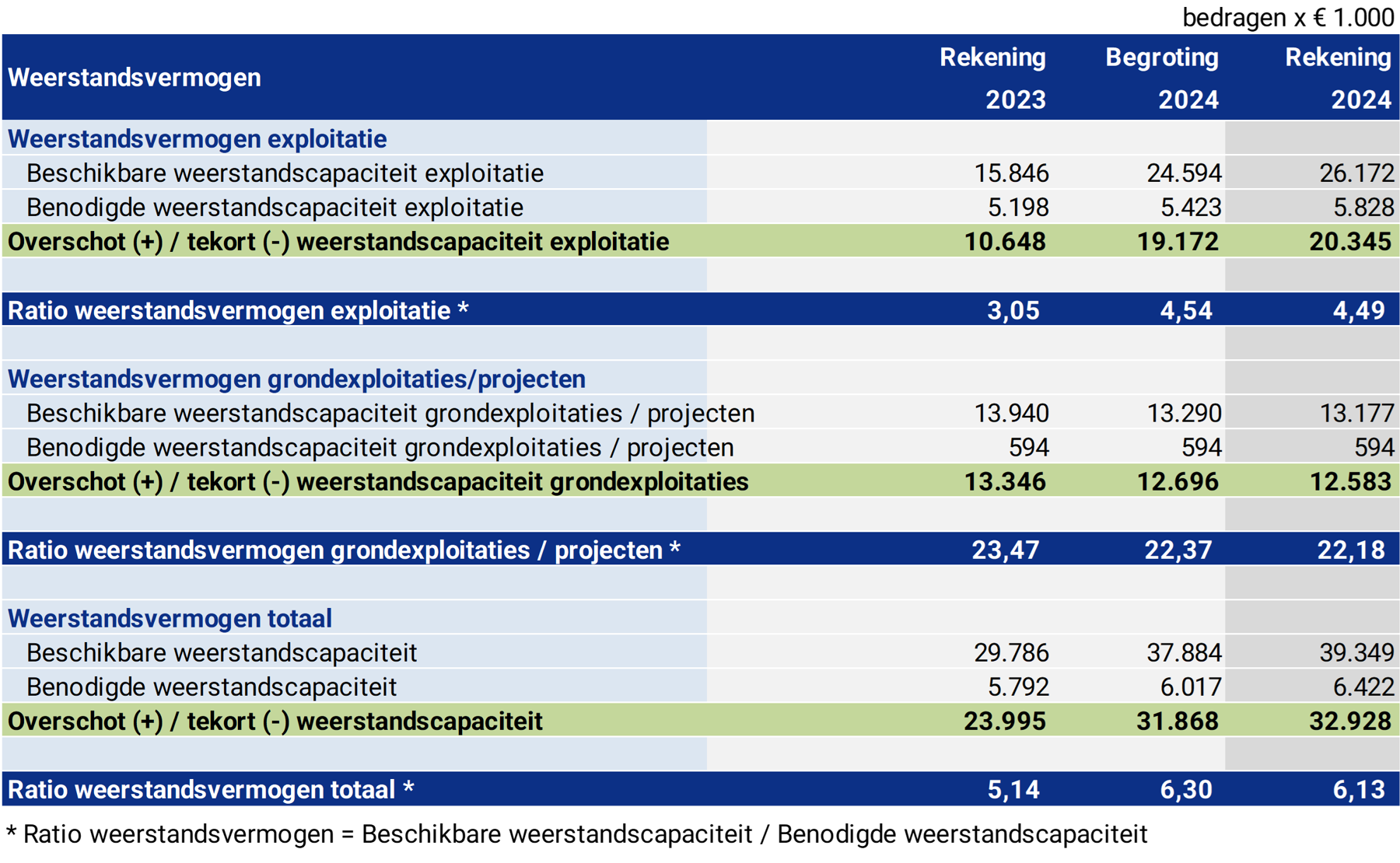 Het weerstandsvermogen totaal kan in 2024 eveneens als uitstekend worden gekenschetst.