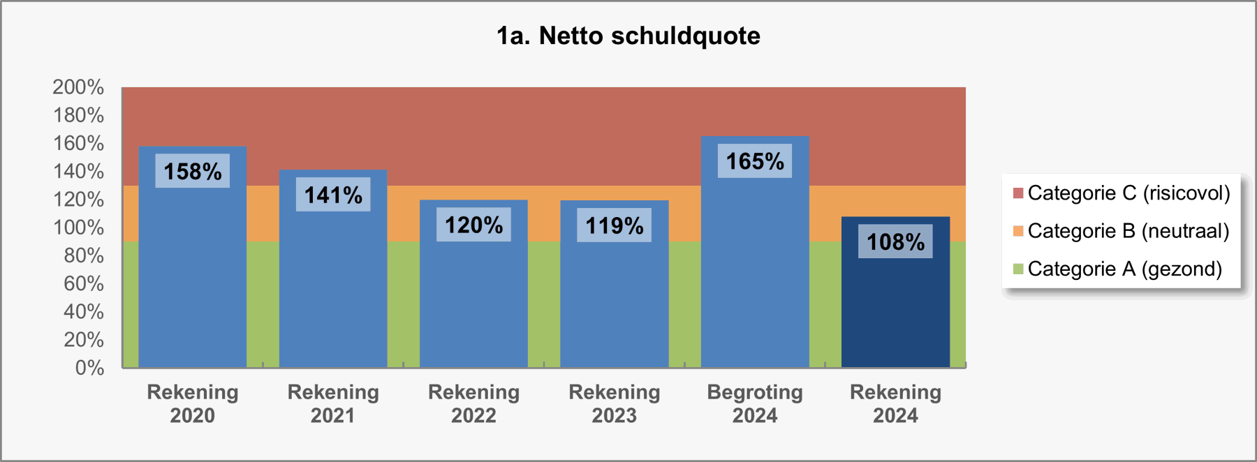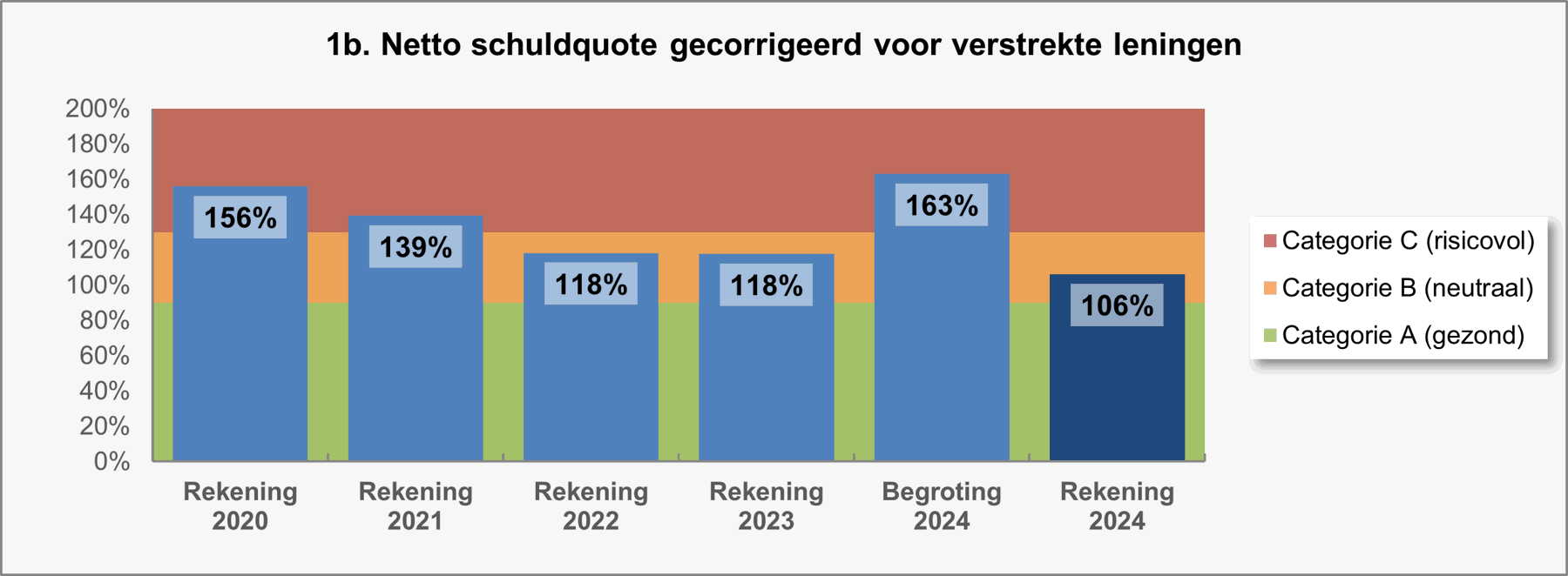 Jarenlang heeft onze gemeente in begroting en rekening stelselmatig rood gescoord op dit kengetal. Sinds de jaarrekening van 2022 is hierin een dalende trend zichtbaar als gevolg van het ingezette beleid tot structureel herstel van de financiële positie van onze gemeente. Mooi is dus om te zien dat zich dit ook vertaald in verbeterende kengetallen.