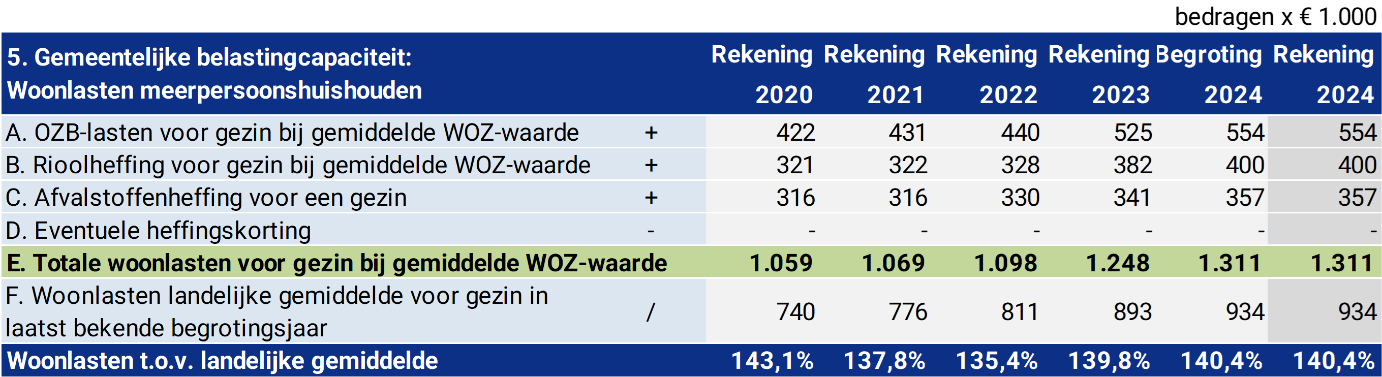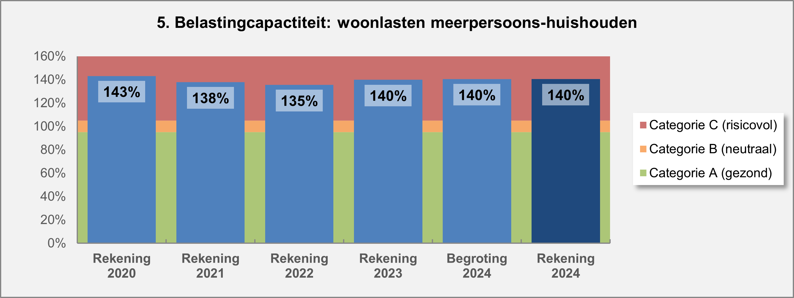 Dat alles neemt echter niet weg dat een score van 140% relatief hoog te noemen is. Om in de buurt van groen uit te komen zou een verlaging van de lokale lasten (OZB, riool en afval) met 40% noodzakelijk zijn.