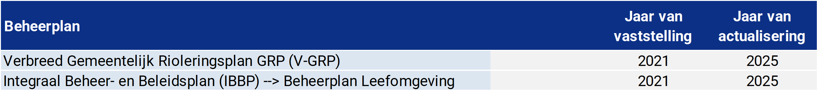 In het Beheerplan Leefomgeving zijn het beleid, het beheer en de benodigde financiële middelen vastgelegd voor alle onderdelen van de openbare ruimte, zoals wegen, waterwerken, kunstwerken, groenvoorzieningen, speelplaatsen en straatmeubilair. In 2021 is een geactualiseerd plan voor de komende vier jaar vastgesteld.