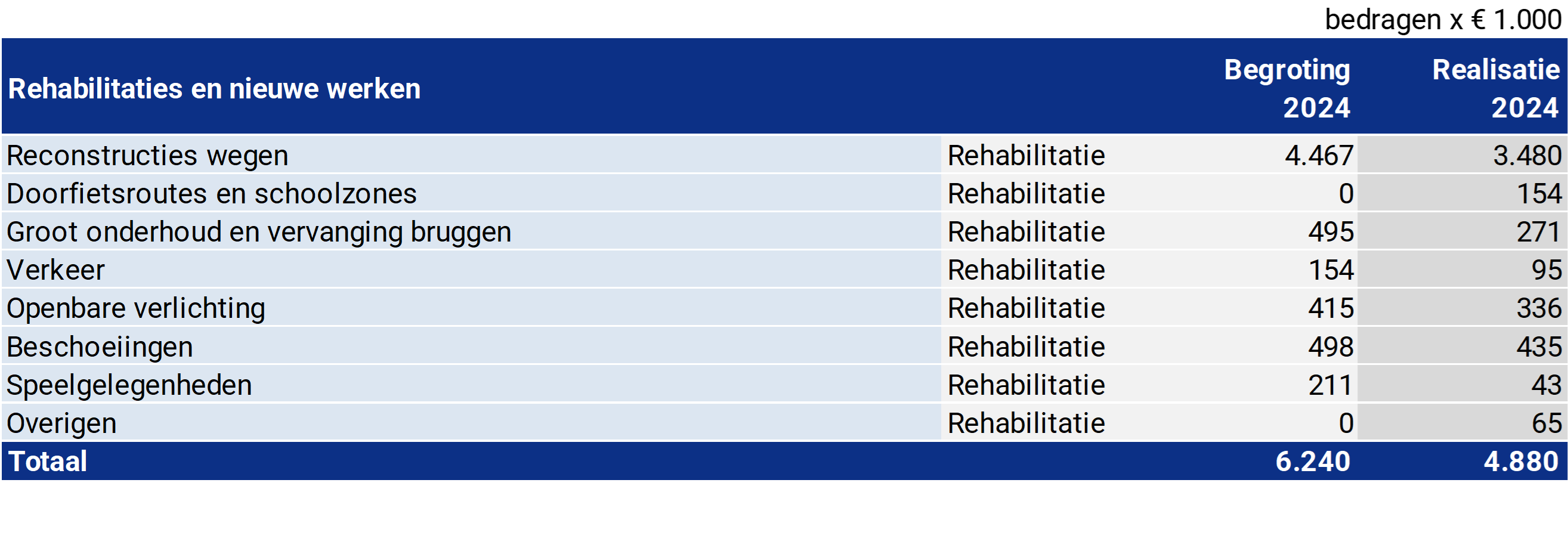 Dit is het totaal vervangen van een kapitaalwerk (bestaande areaal in de openbare ruimte) aan het eind van de levensduur of het uitvoeren van levensduurverlengende maatregelen. Deze investeringen van maatschappelijk nut worden geactiveerd en in een aantal jaren afgeschreven.