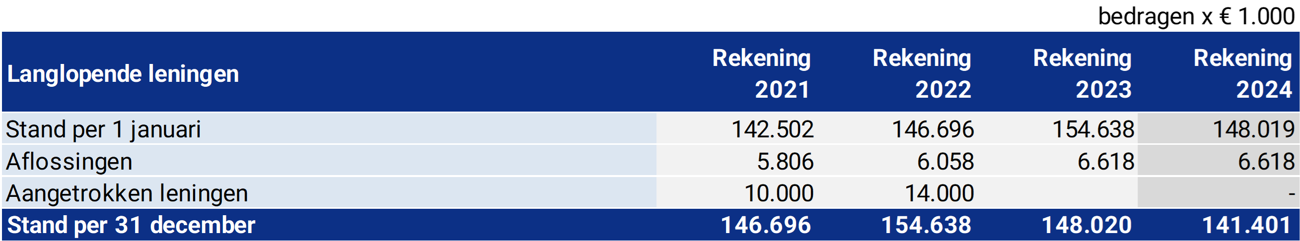 In de onderstaande tabel is het verloop van het saldo langlopende geldleningen opgenomen.