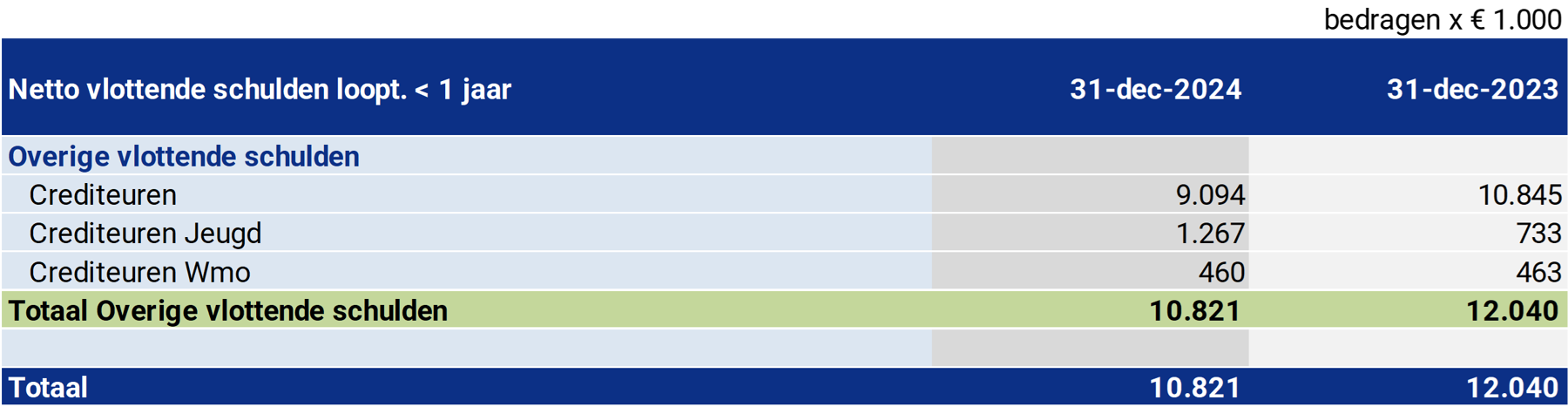 De in de balans opgenomen kortlopende schulden kunnen als volgt gespecificeerd worden: