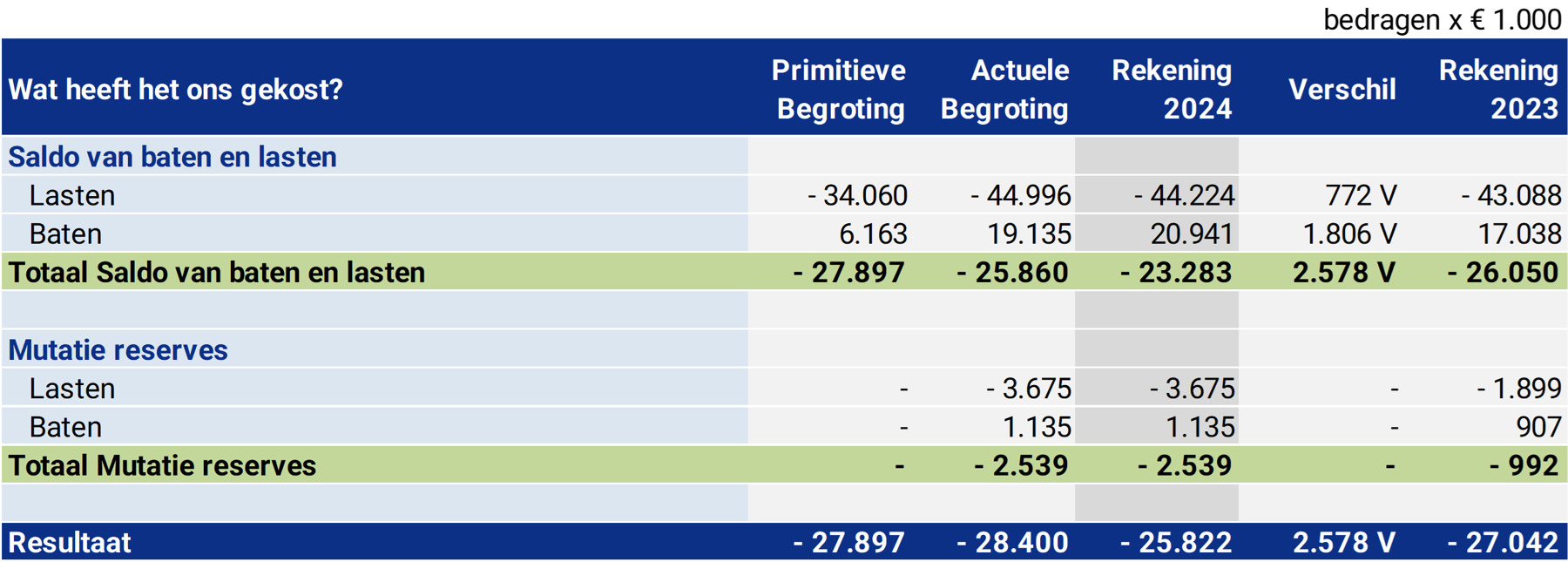Tot slot is er een voordeel te melden van € 26.500 door de definitieve jaarafrekening 2023 van Ferm Werk.