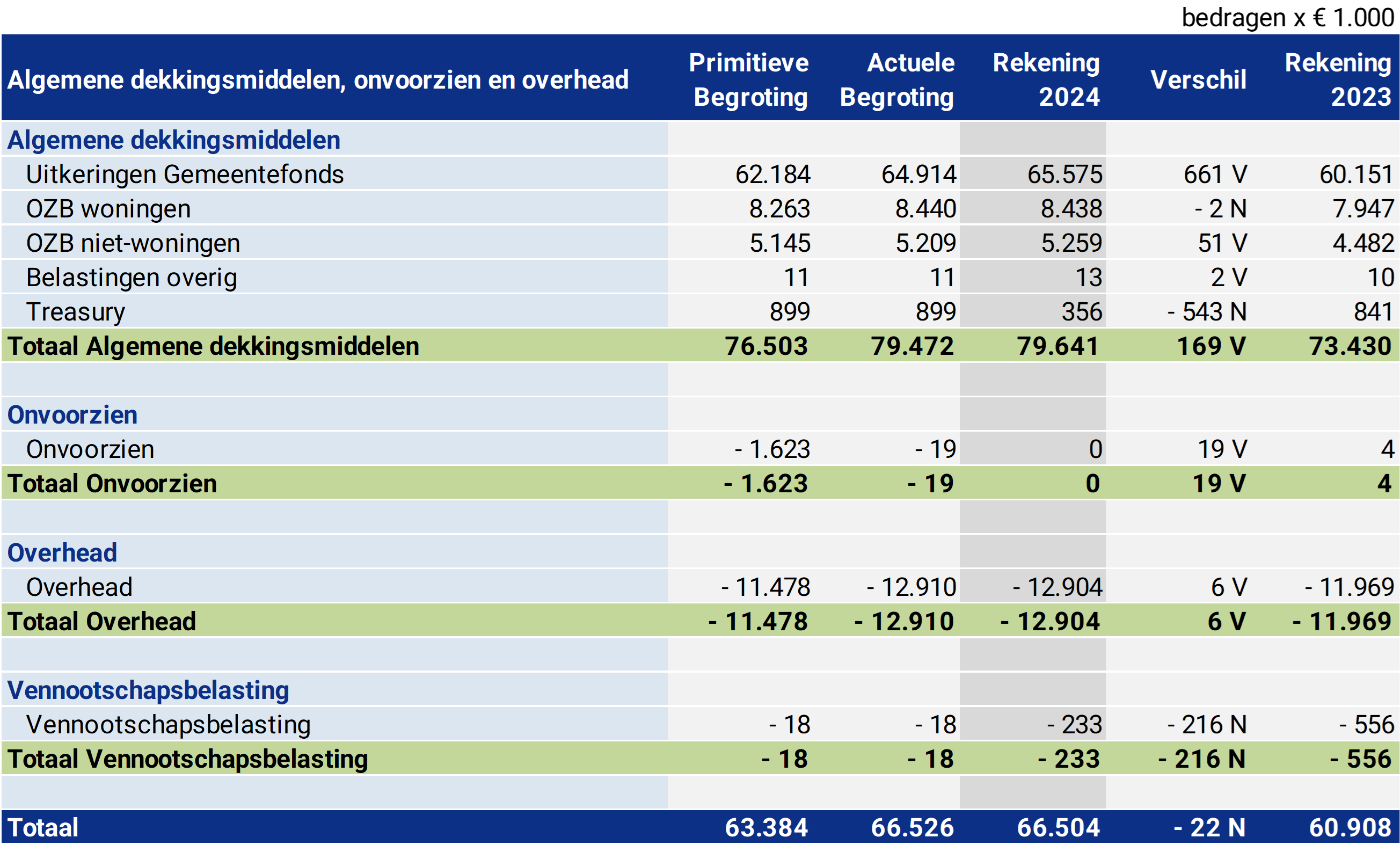 Programma Algemene dekkingsmiddelen, onvoorzien en overhead |