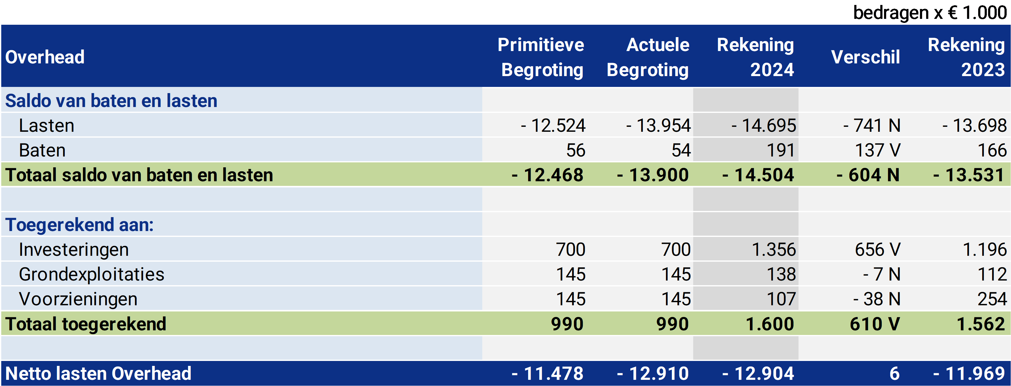 Hogere toerekening aan investeringen en grondexploitaties |
