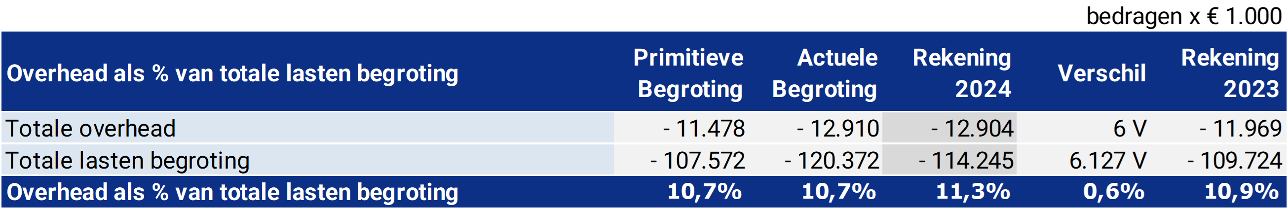 Voor wat betreft de overhead wordt opgemerkt dat deze niet aan de verschillende taakvelden wordt toegerekend maar in één totaal in het programma “algemene dekkingsmiddelen, overhead en onvoorzien” tot uitdrukking wordt gebracht. In het kader van de berekening van de kostendekkendheid van de tarieven wordt de overhead als het ware omgeslagen over de verschillende onderdelen. Hierbij wordt de verhouding van de kosten per taakveld versus het totaal van de kosten van alle taakvelden als basis gehanteerd.