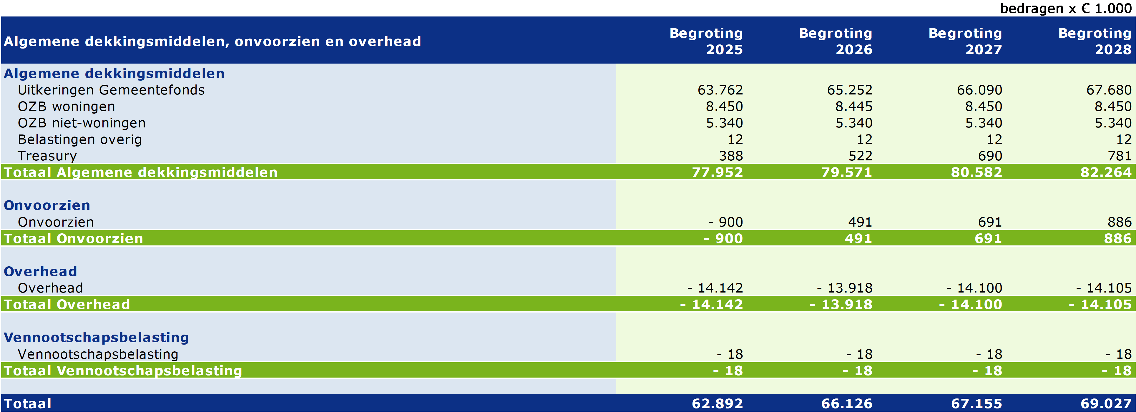 Op basis van het Besluit Begroting en Verantwoording (BBV) dient inzicht te worden verstrekt hoe het bedrag van de overhead tot stand is gekomen. In onderstaande tabel is dat inzichtelijk gemaakt.
