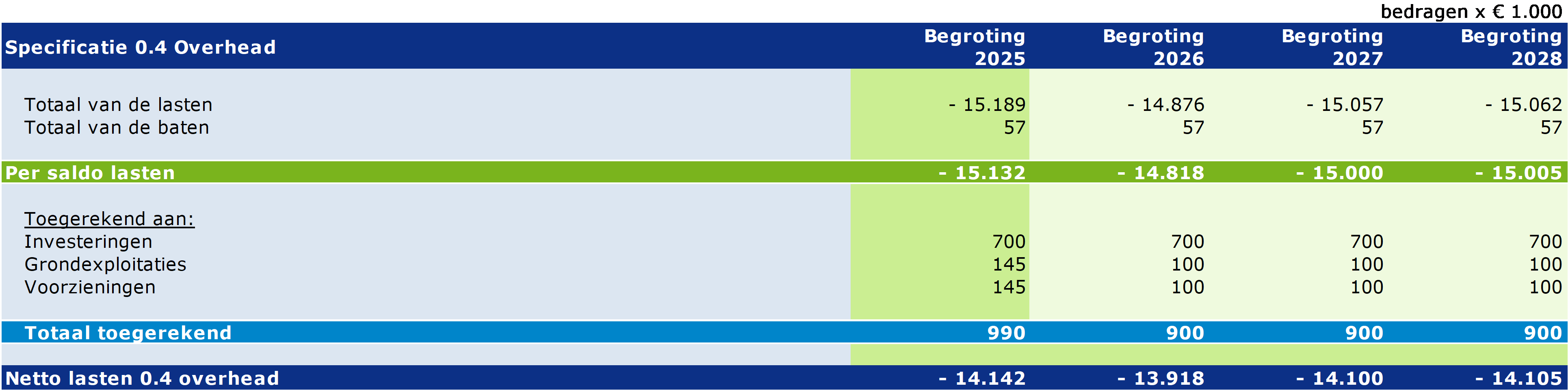 Hierbij wordt opgemerkt dat netto lasten van de overhead niet per programma worden toegerekend, maar in één bedrag in dit programma worden opgenomen.