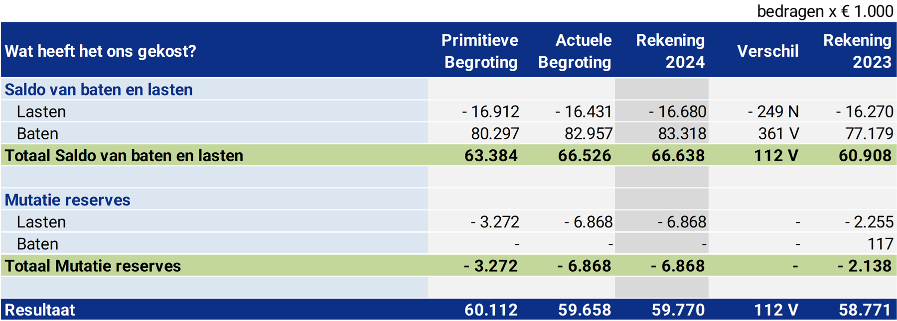 Het hierboven gepresenteerde saldo van baten en lasten kan als volgt gespecificeerd worden opgenomen.