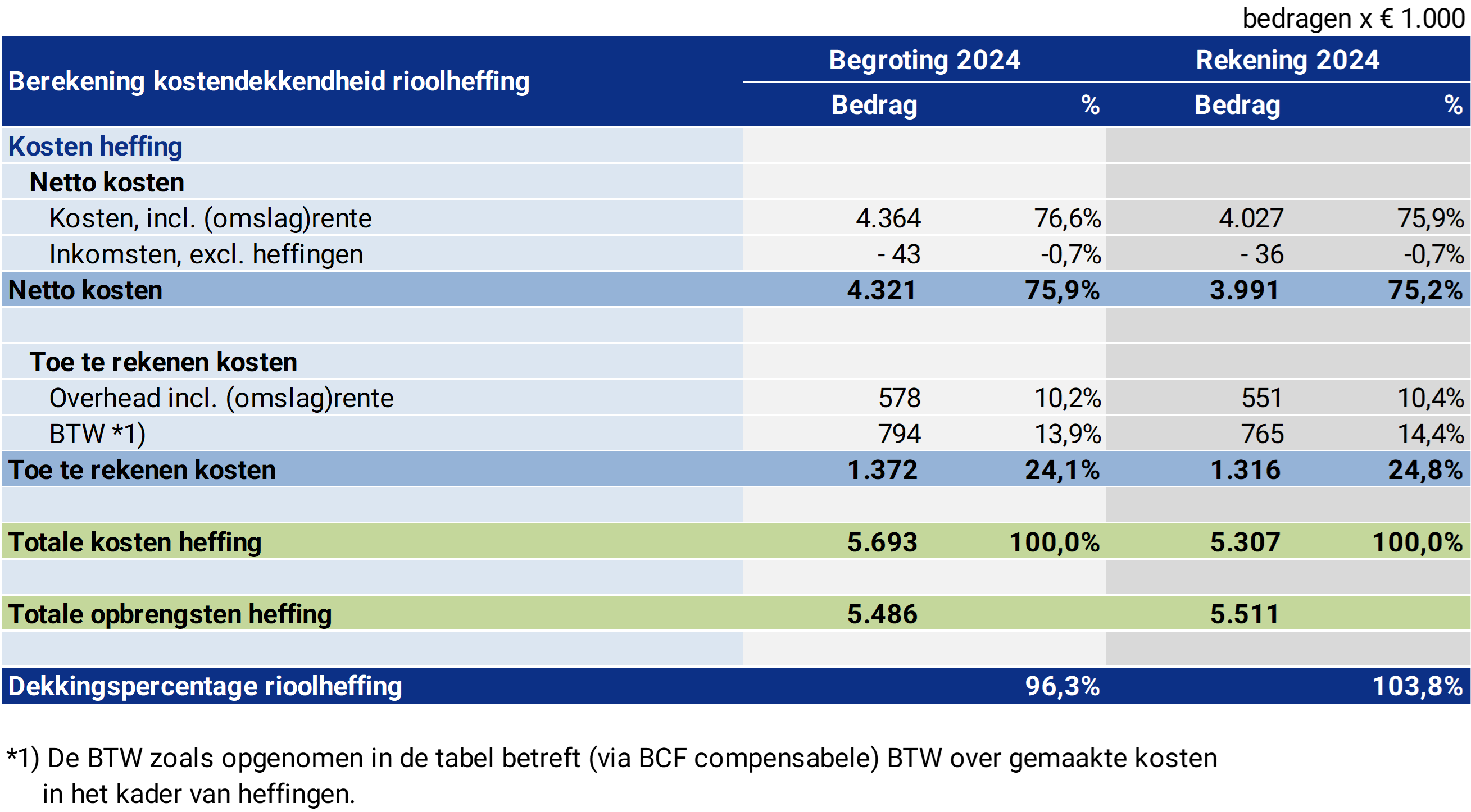 Berekening kostendekkendheid