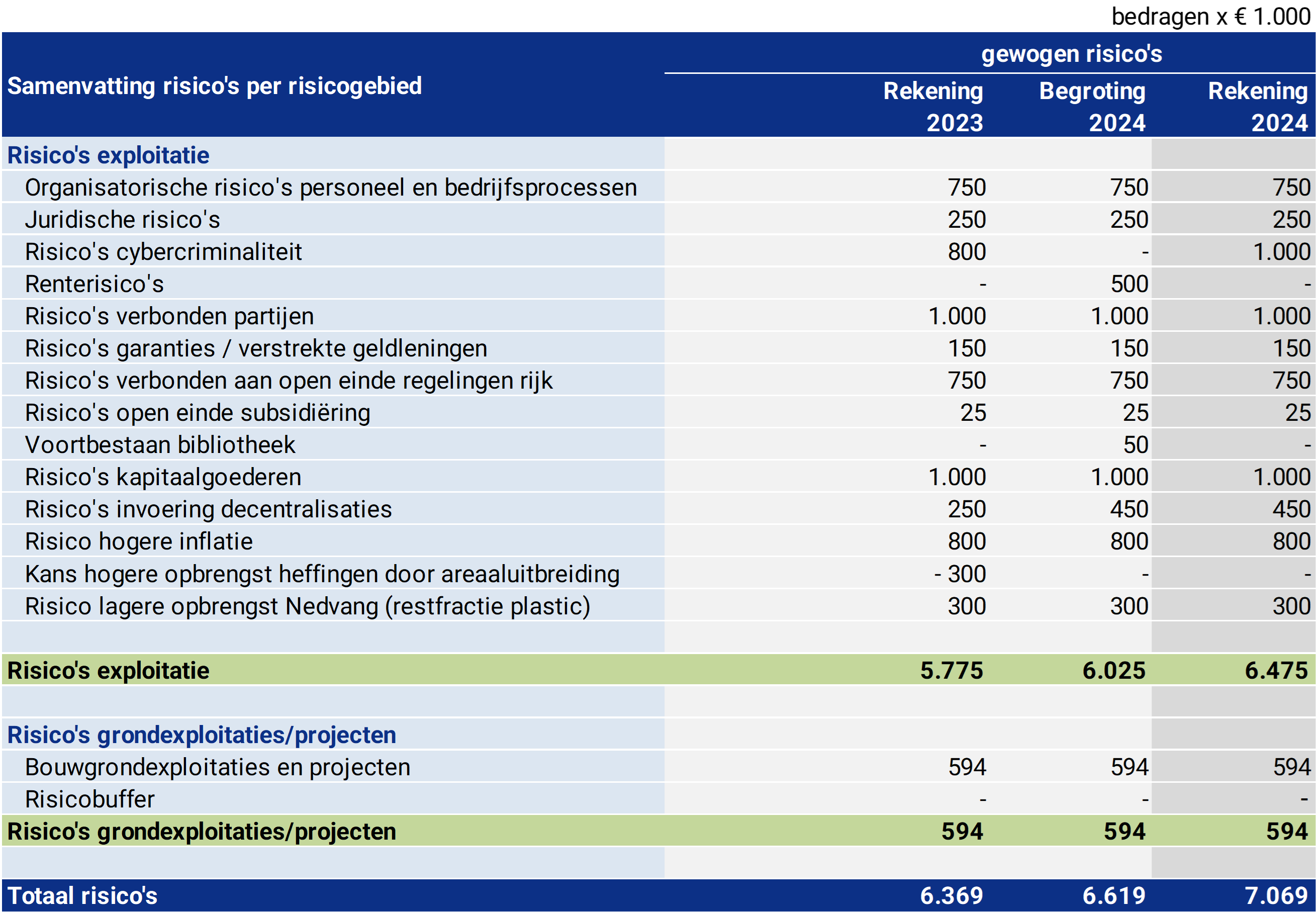 - Hoewel cybercriminaliteit qua risico slecht in te schatten is, is op basis van ervaring bij een andere gemeente, een bedrag van € 1.000.000 opgenomen.